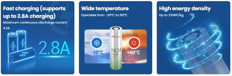 Hạn chế của cell NCM là khả năng chịu nhiệt không cao bằng LFP, tuy nhiên thiết kế hình trụ 18650 lại mang đến độ bền cơ học tốt, đảm bảo an toàn trong hầu hết môi trường sử dụng tiêu dùng.