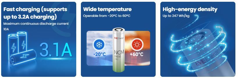 Hạn chế của cell NCM là khả năng chịu nhiệt không cao bằng LFP, tuy nhiên thiết kế hình trụ 18650 lại mang đến độ bền cơ học tốt, đảm bảo an toàn trong hầu hết môi trường sử dụng tiêu dùng.