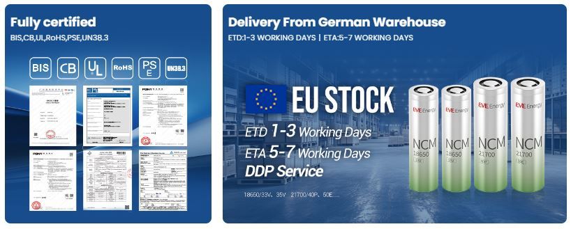 Interlift còn là đơn vị phân phối chính hãng các sản phẩm từ thương hiệu EVE Enegy như cell pin, module pin,... trong đó có Pin hình trụ NCM 21700 50E chính hãng EVE. Tất cả sản phẩm đều đảm bảo đầy đủ CO, CQ cũng như chính sách bảo hành cùng mức giá ưu đãi nhất. Liên hệ ngay với chúng tôi qua hotline hoặc zalo để được hỗ trợ.