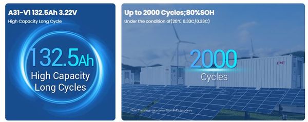 Ưu điểm của A31-V1 là sự ổn định về điện áp, khả năng duy trì hiệu suất tốt sau nhiều chu kỳ và độ an toàn cao nhờ hoá học LFP. Cấu trúc prismatic giúp cell dễ đồng bộ trong module, giảm sai lệch giữa các cell khi vận hành. Chu kỳ sử dụng dài giúp tối ưu chi phí đầu tư và bảo trì.