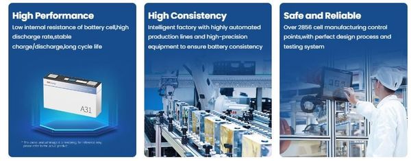 Điểm mạnh của A31-V2 nằm ở khả năng vận hành dài hạn mà không bị suy giảm hiệu suất đáng kể. Cấu trúc prismatic mang lại sự đồng đều trong vận hành, hỗ trợ các nhà sản xuất thiết kế module pin bền bỉ và dễ lắp ráp. Công nghệ LFP đảm bảo mức độ an toàn cao, giảm thiểu rủi ro trong khi vẫn mang lại hiệu năng ổn định và tuổi thọ vượt trội.