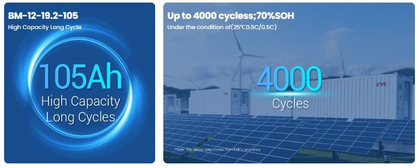 BM-12-19.2-105 là đại diện tiêu biểu của dòng Module & Battery Packs nhờ khả năng cung cấp năng lượng lớn, độ bền cao và thiết kế module chuẩn hóa. Sản phẩm mang lại sự tiện lợi cho quá trình tích hợp và vận hành, phù hợp cho thị trường công nghiệp và xe điện đang tăng trưởng. Đây là giải pháp pin cân bằng giữa an toàn, chi phí và hiệu suất – một trong những lựa chọn đáng tin cậy nhất trong hệ Power Battery của EVE.