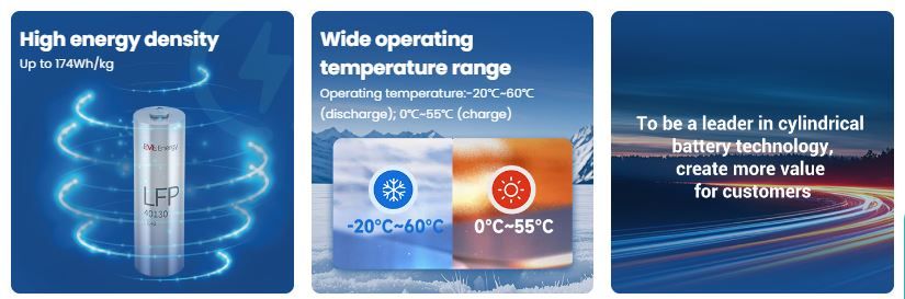 C40130 là pin LFP dạng trụ thuộc nhóm Cylindrical LFP Cell – Consumer Battery.