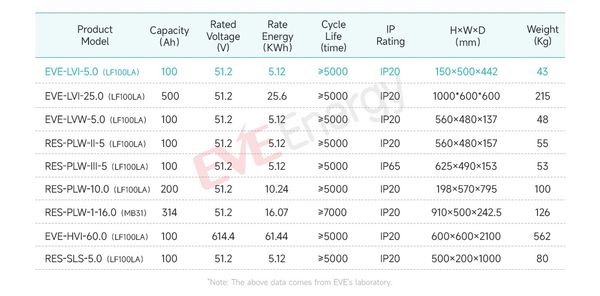 2. Bảng thông số kỹ thuật của Hệ thống lưu trữ năng lượng gia đình EVE-LVI-5.0