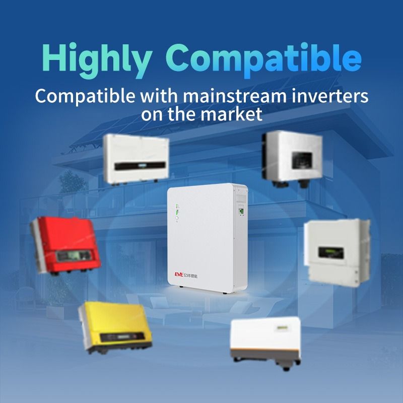 Một trong những đặc tính kỹ thuật quan trọng là EVE-LVW-5.0 tương thích với hầu hết inverter dân dụng trên thị trường. Điều này bao gồm hybrid inverter, inverter hòa lưới có lưu trữ và inverter độc lập.