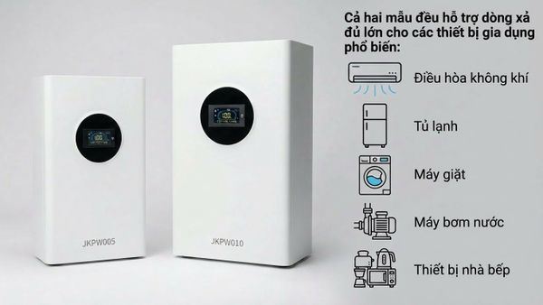 Các thông số cho thấy JKPW005 và JKPW010 dùng chung nền tảng kỹ thuật, khác biệt chính nằm ở dung lượng và khả năng chịu tải, giúp người dùng lựa chọn linh hoạt theo nhu cầu điện sinh hoạt.