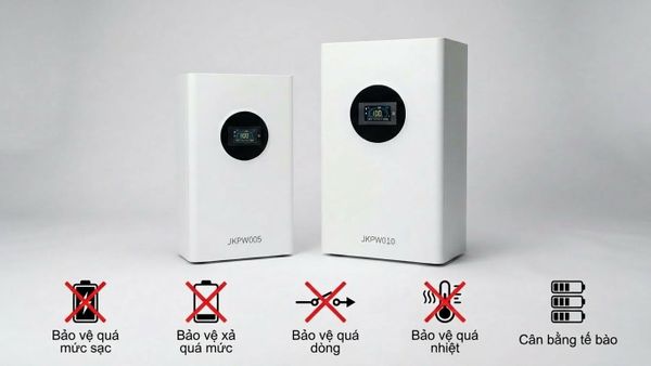 Một điểm mạnh quan trọng của JKPW005 và JKPW010 là khả năng ghép song song tối đa 32 bộ, cho phép người dùng mở rộng dung lượng khi nhu cầu điện tăng lên trong tương lai. Giao tiếp RS485 / RS232 / CAN giúp pin tương thích tốt với nhiều inverter hybrid phổ biến trên thị trường.