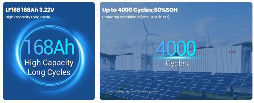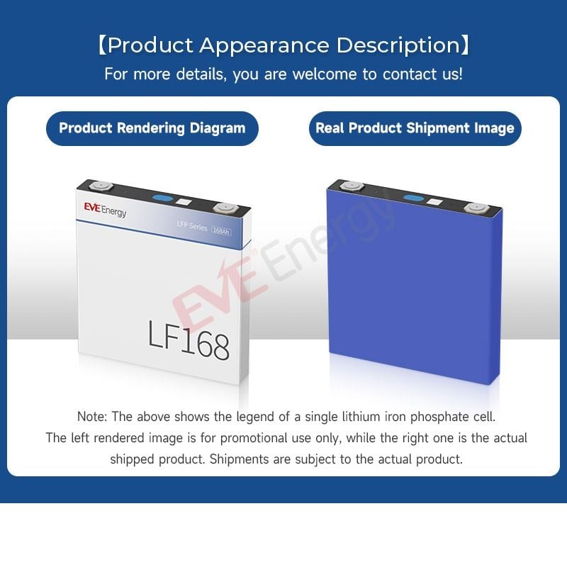 LF168 là cell LFP dạng khối dung lượng lớn thuộc dòng Prismatic LFP Cell của EVE Energy.