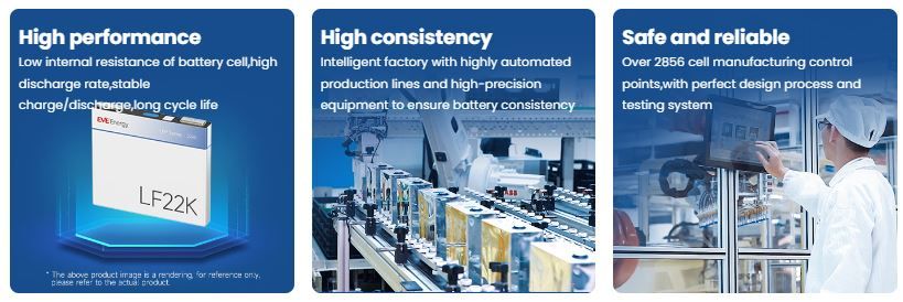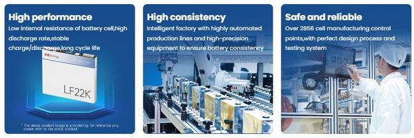 Điểm mạnh của LF22K là khả năng duy trì hiệu suất ổn định trong thời gian dài mà không xảy ra suy hao đột ngột. Cấu trúc prismatic giúp cell dễ dàng tích hợp vào module tiêu chuẩn, đảm bảo sự đồng nhất trong quá trình sản xuất và lắp đặt. Đây là yếu tố quan trọng để tăng độ tin cậy của cả hệ thống pin và giảm chi phí bảo trì tổng thể.