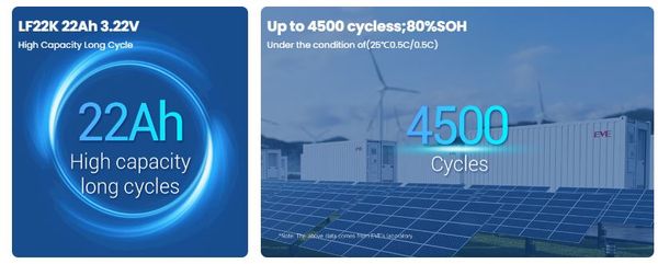 Ưu điểm lớn nhất của LF22K là độ ổn định điện áp và khả năng chống quá nhiệt tốt, giúp đảm bảo hiệu suất ổn định ngay cả trong điều kiện tải thay đổi. Chu kỳ sạc xả dài cũng giúp cell duy trì tuổi thọ cao và giảm thiểu chi phí bảo trì.