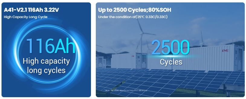 A41-V2 thuộc nhóm Prismatic LFP Cell của EVE Energy, được thiết kế theo tiêu chuẩn công nghiệp với độ ổn định cao và khả năng hoạt động lâu dài. Nhờ cấu trúc dạng khối vững chắc, cell có thể duy trì điện áp ổn định trong các hệ thống yêu cầu dòng xả đều và liên tục. Công nghệ LFP mang lại hiệu suất vận hành ổn định, tăng độ an toàn và giảm tối đa rủi ro liên quan đến nhiệt.
