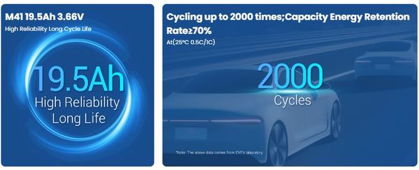 Điểm nổi bật của M41 là sự kết hợp giữa hiệu suất mạnh, kích thước gọn và khả năng tối ưu hóa không gian trong pack pin. Công nghệ NCM giúp tăng mật độ năng lượng và duy trì hiệu suất cao theo thời gian. Thiết kế prismatic đảm bảo sự ổn định cơ học, tăng độ bền module và giảm tỷ lệ lỗi trong quá trình sử dụng thực tế.
