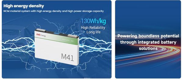 M41 là cell pin NCM dạng prismatic được tối ưu hóa bởi EVE Energy nhằm mang lại sự cân bằng giữa mật độ năng lượng, độ ổn định và tính linh hoạt khi tích hợp vào các hệ pin hiện đại. Thuộc danh mục Prismatic NCM Cell trong hệ Power Battery, M41 sử dụng nền tảng Lithium Nickel Cobalt Manganese (NCM), giúp tăng khả năng lưu trữ, giảm trọng lượng và đáp ứng nhu cầu tải lớn. Đây là cell phù hợp cho thiết bị điện thông minh, phương tiện di chuyển nhỏ gọn và các ứng dụng cần nguồn năng lượng mạnh nhưng ổn định lâu dài.