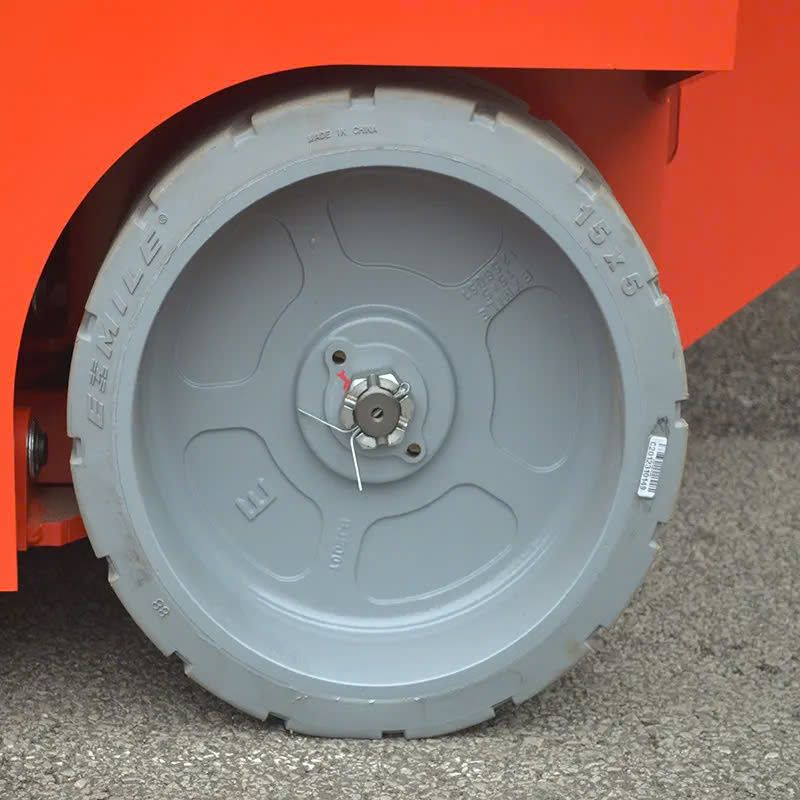 Khả năng xoay tại chỗ giúp xe vận hành dễ dàng trong không gian chật hẹp, lý tưởng cho các khu vực thi công trong nhà và ngoài trời.Sàn làm việc rộng rãi